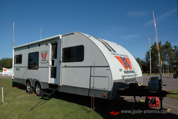 All communications run during the weekend were facilitated with KB9VBR J-Pole antennas. A total of six KB9VBR J-Pole antennas were used for the amateur radio, MURS, GMRS, and VHF Public Safety bands. All weekend, participants had no problem hearing the transmissions from the communications trailer. In fact at one point the trailer was receiving GMRS traffic from a highway road construction crew over two miles away from the event. The MURS antenna easily covered the volunteers and organizers as they communicated over the 3 square mile event grounds and the Public Safety Land Mobile band antenna easily heard the law enforcement traffic over the 12 mile parade route.