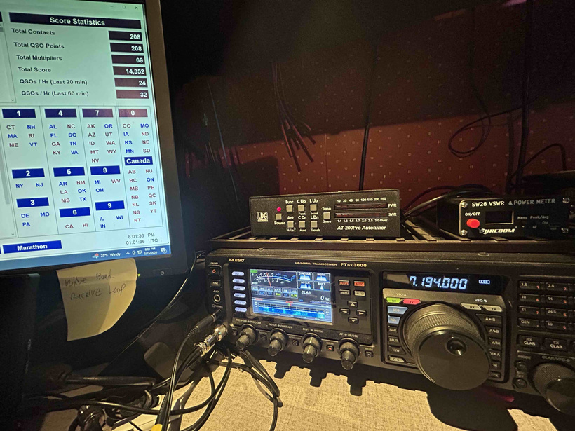 Despite band conditions, local noise, and a half buried antenna, I managed to operate for about 3 hours of the seven hour contest. The other time, I was outside shoveling snow. With all those limitations, I still managed 208 contacts, 69 multipliers, and 14,352 points. Not my best, but respectable for the amount of time I committed to the event.